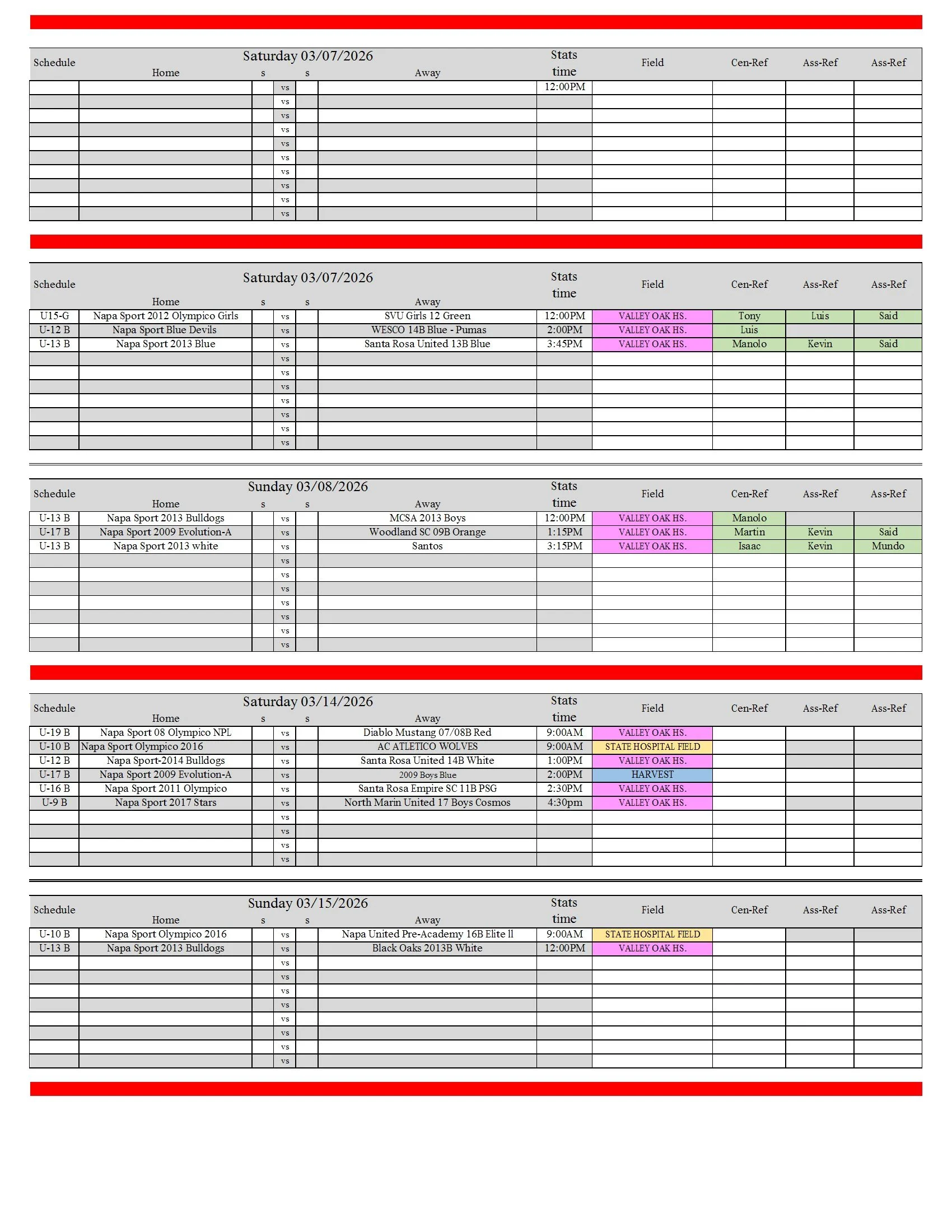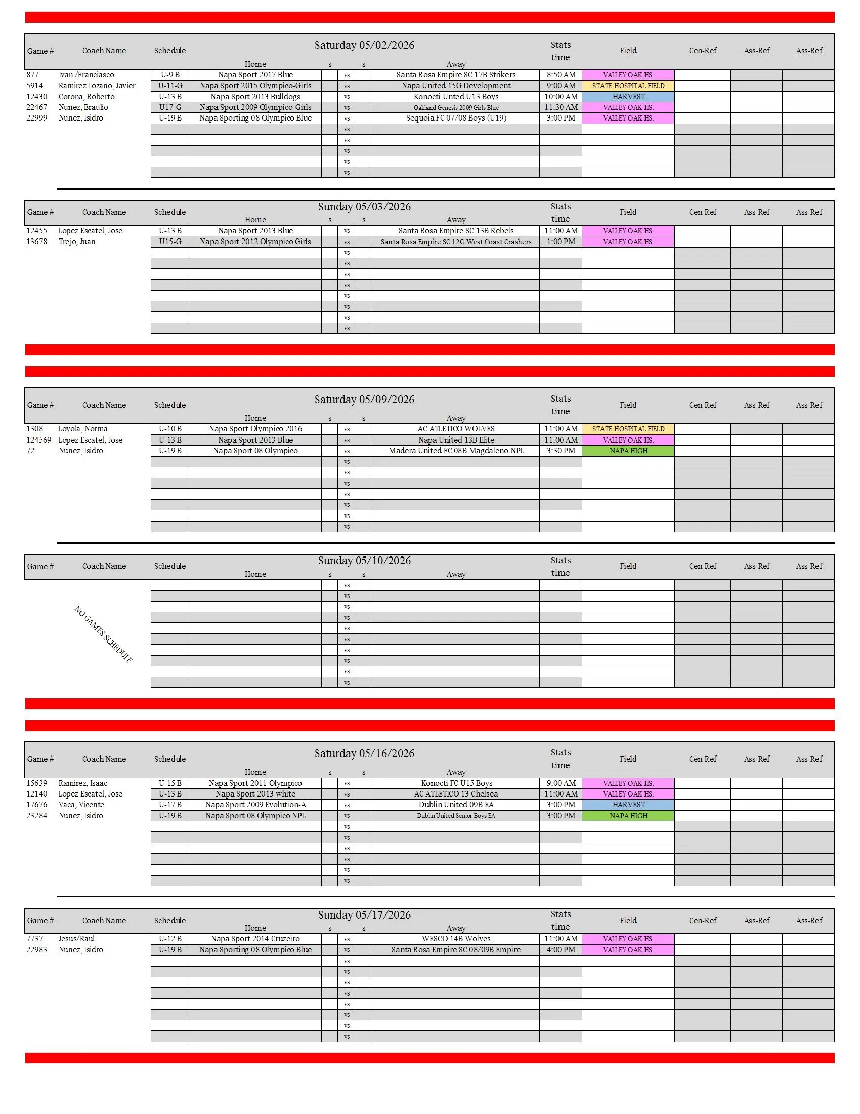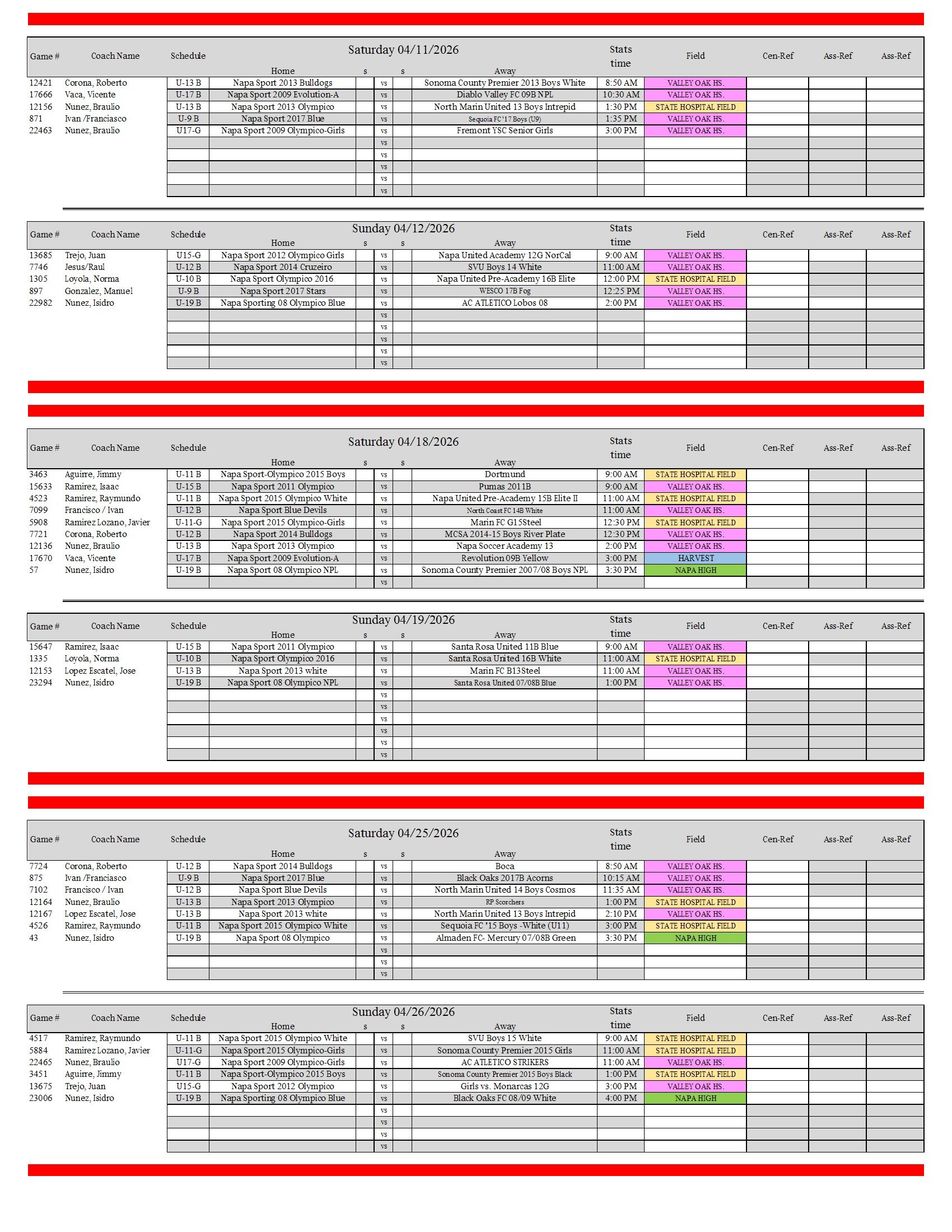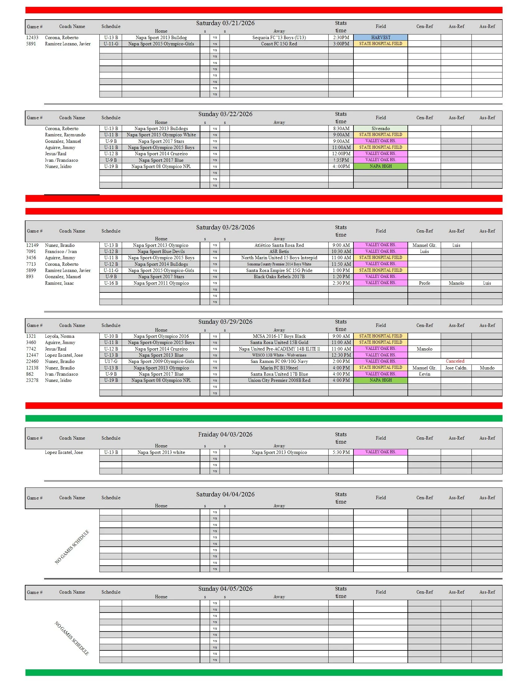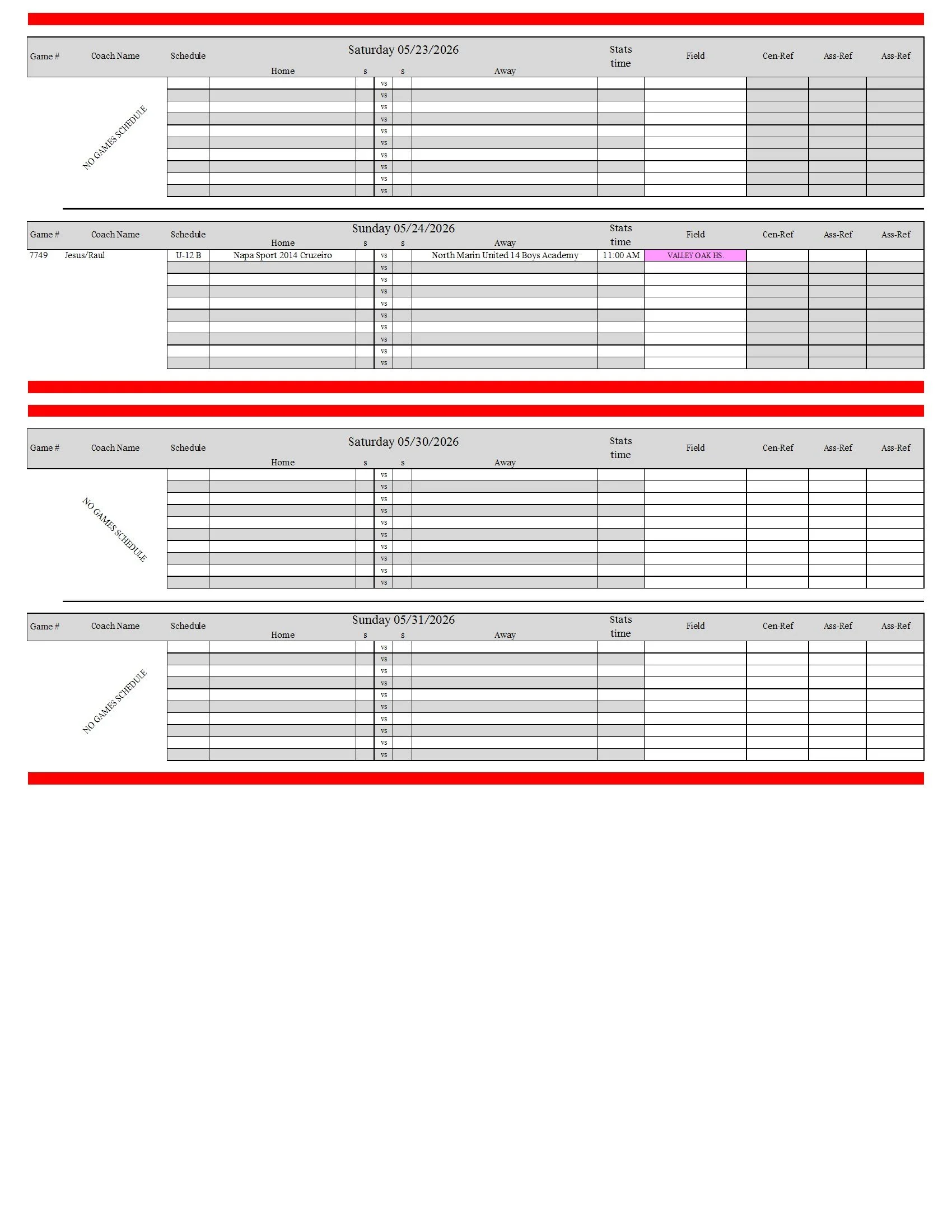 Spring 2026 Games Scheduled